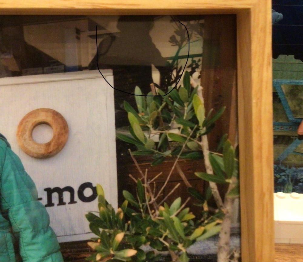 ドーナツ屋で撮った写真です。 黒い誰かがいます。 この辺にはドーナツ屋も中にこの時間には客は一人もいませんでした。 反射だとしてもこっち側にはこんな人いません。 一体誰?