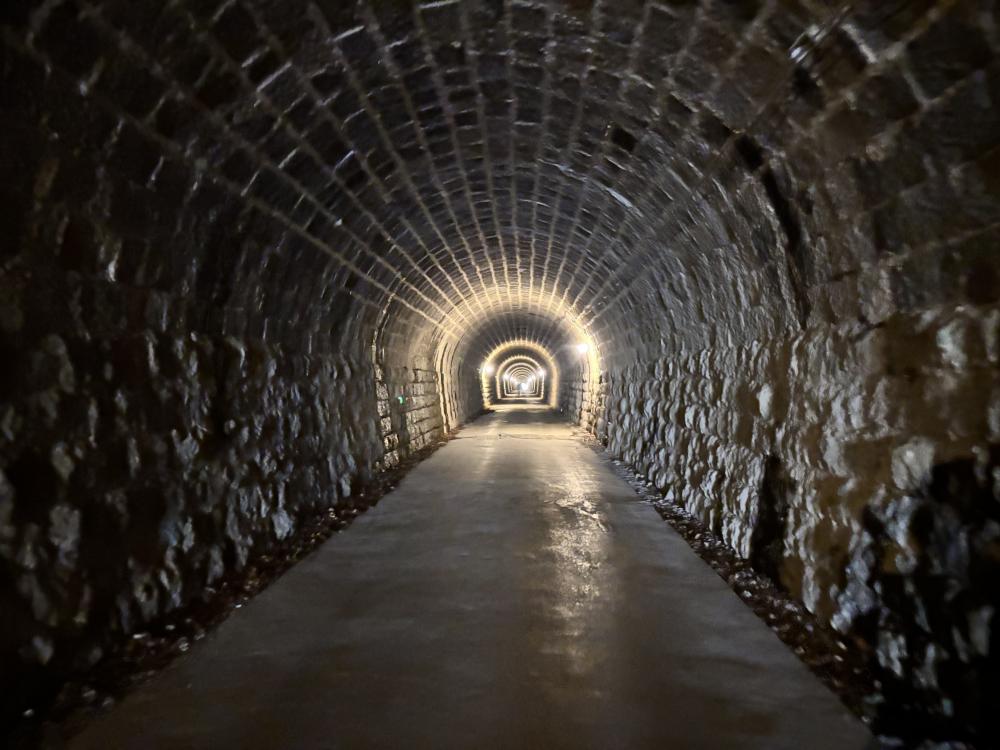 昼間に行きましたが石のレンガ模様がオシャレなトンネルでした。