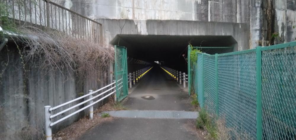 第二京阪道路、枚方学研ICの下を通る歩行者用のアンダーパス。この道を通る人は少なく、知る人ぞ知るといった感じのスポット。