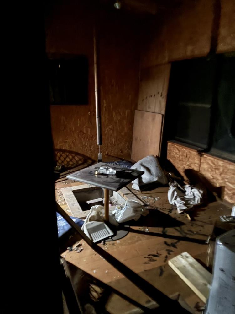 祠のさらに奥に進んだ先にあった小屋のような場所、やねや村役所と書かれていた