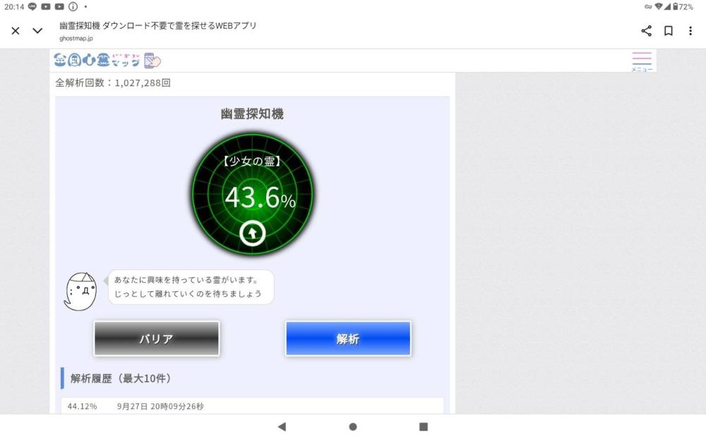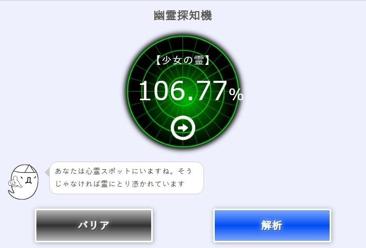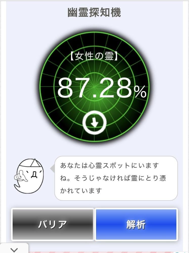 この近くに幽霊がいる可能性は「7.55%」です。https://ghostmap.jp/spotradar.php