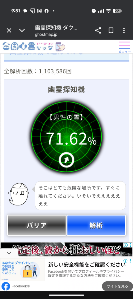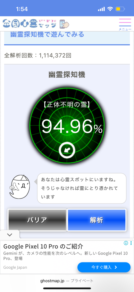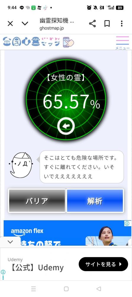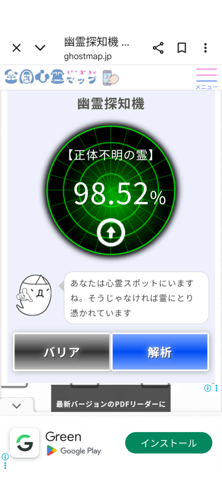 あらっ!いや〜ん~~、昨日は新札幌のサンピアザ(心霊スポットとして有名)ヘ、買い物ヘ行ったら、探知機の数値が15.72なので自分の方へ向いてまわ。買い物してる時に取り憑かれたかもしれませんね?