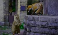 キツネとカワウソが夜の街で行動を共にする姿が監視カメラにとらえられる
