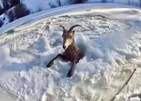 氷にすっぽり。首から下がはまりこんだ野生の羊の救出大作戦(アメリカ)