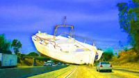 高速道路でボートが暴走!牽引車から外れ中央分離帯を越え対向車線に