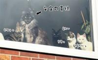 窓際で飼い主の帰宅を待ちわびる猫たちの中で、圧倒的存在感を放つメインクーン