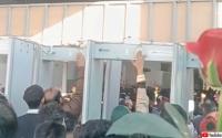 新たな信仰対象は寺院のセキュリティゲート?次々にタッチして通る信者たち