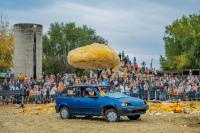 巨大カボチャ vs 廃車寸前の車、耐久勝負の結末は?
