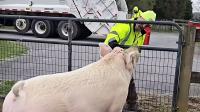 木曜日キター!大好きなリサイクル作業員に駆け寄り、撫でてもらうのを楽しみにしているブタ