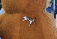 アライさん事案。天井からアライグマが逆さまで宙ぶらりん