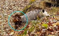 尻尾で葉っぱをくるんと巻いて。キタオポッサムの巣材運びがかわいい