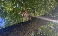 リスを夢中で追いかけ木に登ったハスキー、自力で降りられないことに気付く