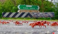 熊手を使って誘導。クリスマス島のアカガニの大移動が今年も始まる