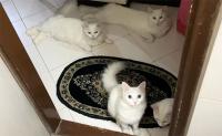 こんな動画だけ見ていたい。バスルームに入るとドアの前で待ち続ける5匹の白猫